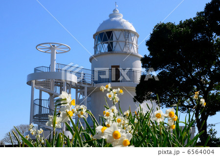 スイセンの花が咲く樫野崎灯台