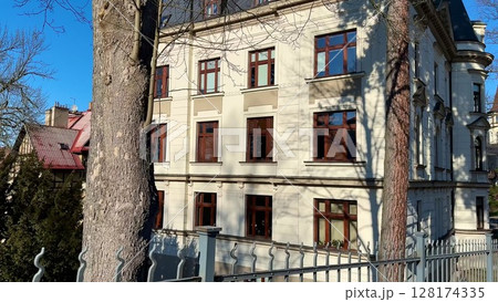 Bright winter day in Jizerka Village reveals cross-country skiing tracks. Snow-covered landscape invites outdoor enthusiasts for a refreshing leisure activity in nature.