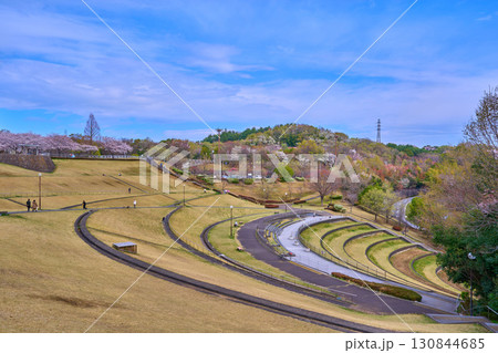 桜咲く東京都稲城市若葉台1丁目の若葉台公園を見る