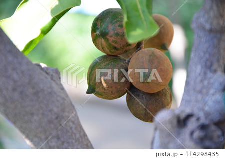 自然 植物 マテバシイ、八月。緑色の大きな団栗は今年の秋に実ります