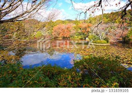 京都 龍安寺 鏡容池の秋景色