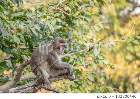 木の上にすわるニホンザル 嵐山モンキーパークいわたやま