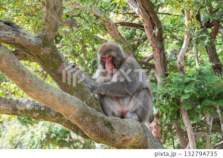 木の上で毛繕いするニホンザル 嵐山モンキーパークいわたやま