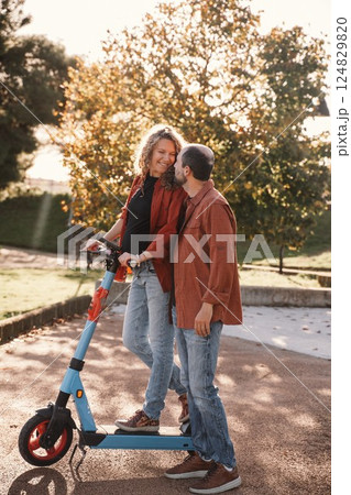 Couple Enjoying a Romantic Moment on Electric Scooter