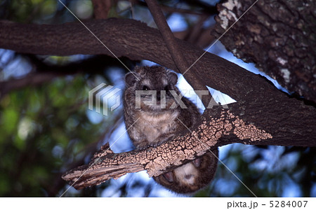 大木の上からカメラ目線でポーズをとるエゾモモンガ