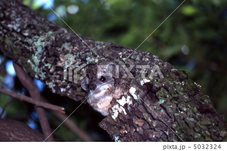 大木の上からカメラ目線でポーズをとるエゾモモンガ