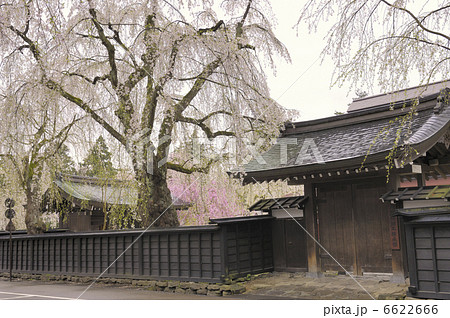 朝日を浴びる武家屋敷と枝垂桜 角館