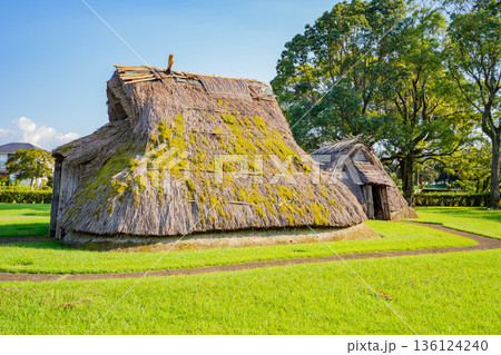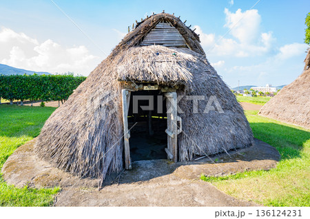 橋牟礼川遺跡の竪穴式住居の風景(指宿市)