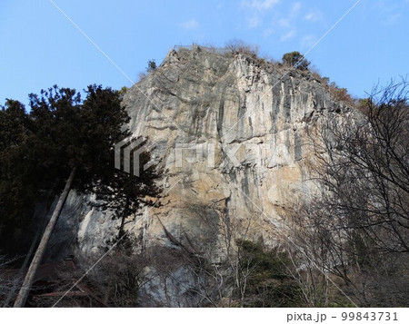 切り立つ岩山と橋立堂【岩陰遺跡】/埼玉県秩父市【ジオパーク秩父】