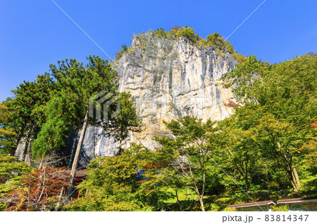 切り立つ岩山の前に石龍山橋立堂/埼玉県秩父市【ジオパーク秩父】