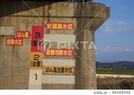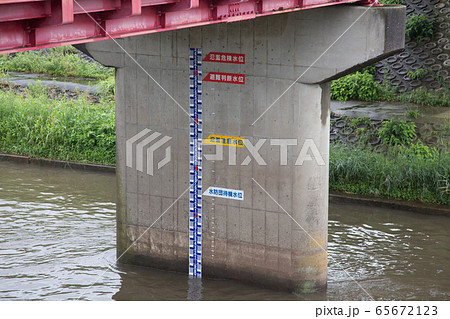 水位計 橋脚 橋 川 洪水 水害
