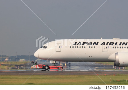 エンジンをスタートするJAL機 プッシュバックされるJAL機