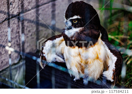 メガネフクロウの鋭い眼差し
