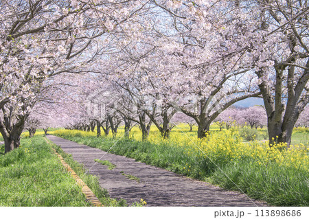 【山梨県】桜満開の眞原桜並木と南アルプス・八ヶ岳