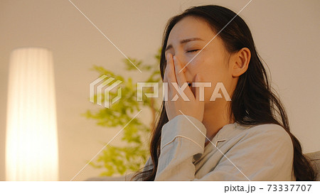 欠伸するお疲れの女性、日本人ミドル、主婦