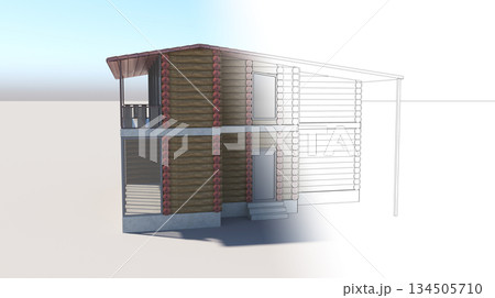 empty pavilion, contour visualization, 3D illustration, sketch, outline