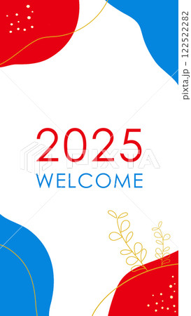 2025年大阪万博イメージカラーのナチュラルフレーム 赤と青のボタニカルイラスト