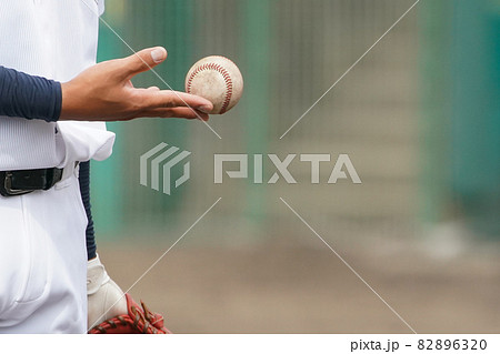 野球の試合前のシートノック中にボールをグローブに投げ入れる選手の手元