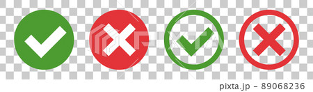 チェックマークとバツマークのアイコンセット 透過背景 ベクター