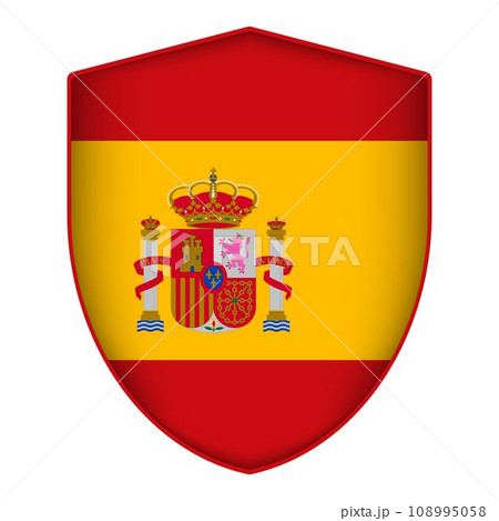 Vertical Spain flag in shield shape, four 3d and simple versions. Spanish icon / sign