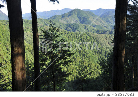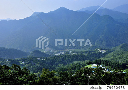 奥武蔵の日向山より望む奥武蔵の山々のパノラマ写真