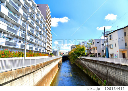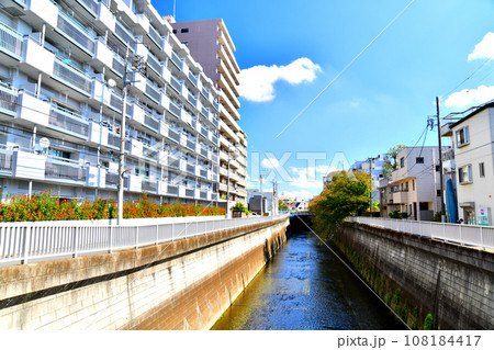 丸山橋/石神井川より(氷川台駅周辺)下流(正久保橋)方向を望む(東京都練馬区)【2023.10】