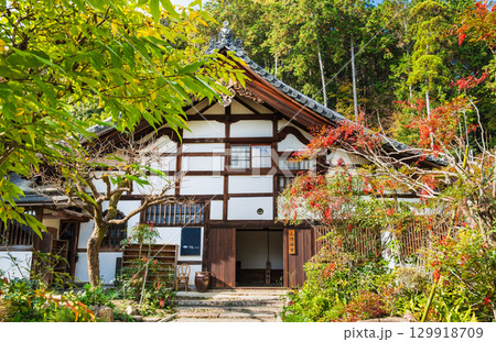 秋の京都 正伝寺 紅葉に包まれた庫裏