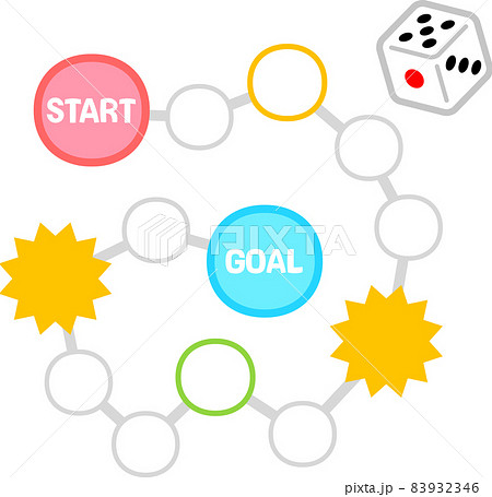 すごろくゲームの盤面とサイコロ