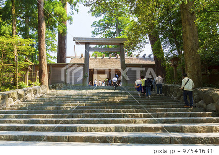 人の写り込みがない内宮神殿 内宮の正宮の風景 伊勢神宮 正宮へ続く階段