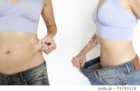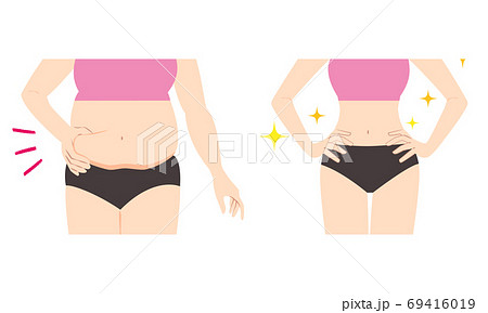 ダイエットをした女性の腹部 ビフォーアフター 線画