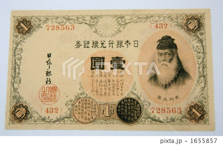 日本の旧紙幣/一円札(明治22 年)/武内宿禰、漢数字