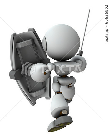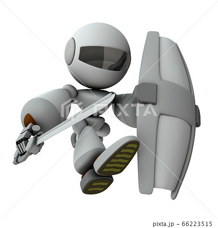大きな剣で攻め込むロボット【3Dレンダリング】