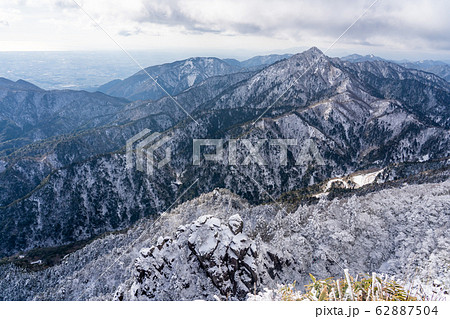 三重県 冬の御在所山頂 樹氷 見晴台からの眺め 鎌ヶ岳