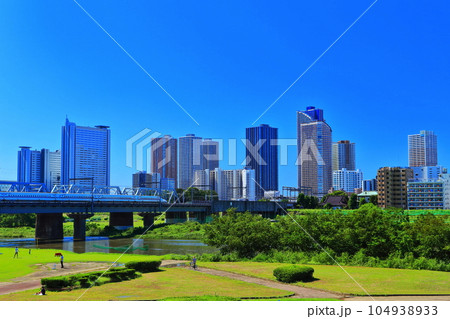 多摩川沿いに望む武蔵小杉の高層ビル群 神奈川県川崎市