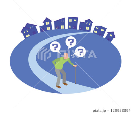 認知症で夜間の徘徊をするシニア女性 認知症の症状 シンプルでお洒落な線画イラスト