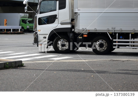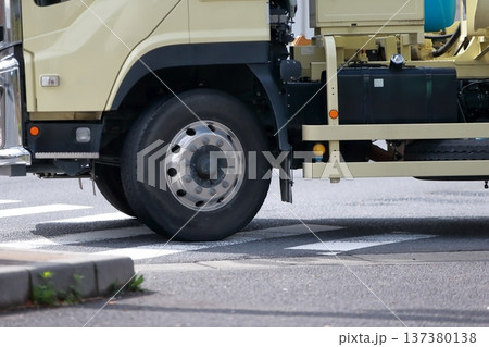 交差点を左折中のトラック