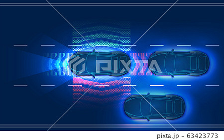 Automatic braking system avoid car crash from car accident. Concept for driver assistance systems. Autonomous car. Driverless car. Self driving vehicle. Future concepts smart auto. HUD hologram Vector