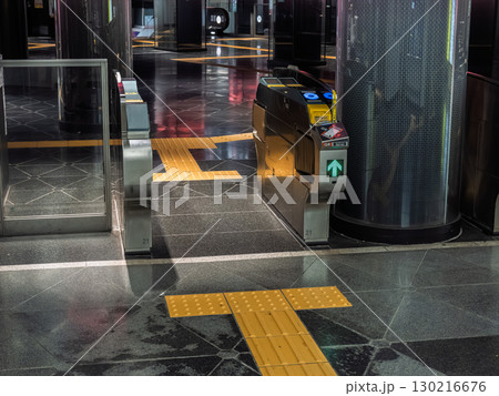 鉄道駅の自動改札と点字ブロック
