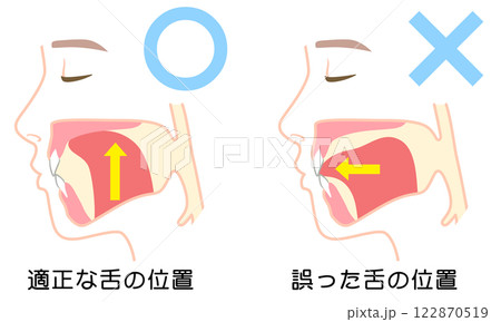 正しい舌の位置と下がっている舌の位置 ミューイング