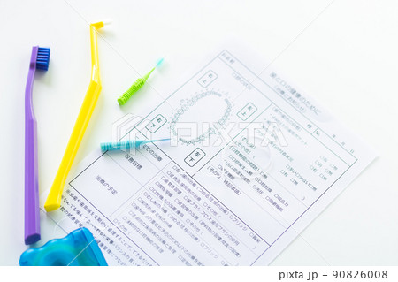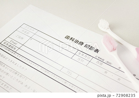 歯科治療問診表と歯ブラシ、歯医者の初診