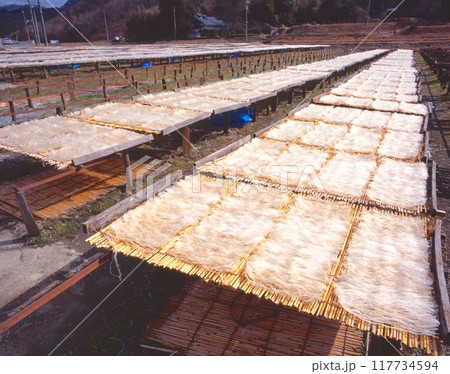 関西の冬の風物詩、猪名川町下阿古谷・阿古谷地区の「寒天の天日干し」