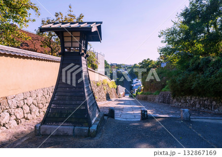 Wood tower lantern in Kitsuki town at Suya no Saka slope, Oita