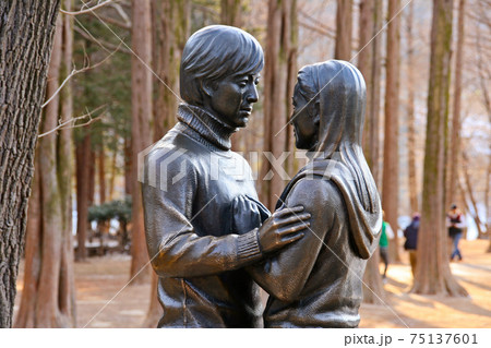 韓國熱門景點-南怡島。裴勇俊雕像,著名的電視劇-冬季戀歌。