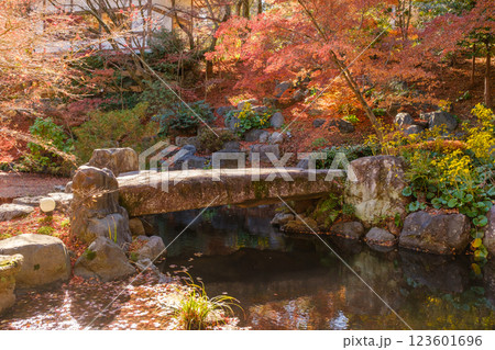 紅葉に囲まれた美しい日本の伝統的な建築