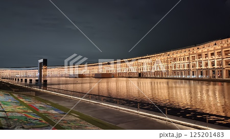 夜のイルミネーションに輝くウォータープラザ