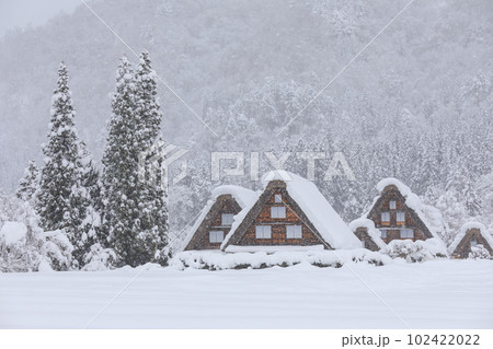 富山県五箇山の合掌造り集落の厳しい冬の風景