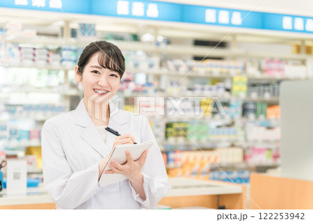 薬局で働く薬剤師も女性(メモ・勉強・服薬指導)