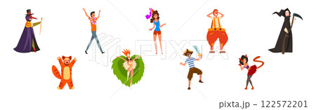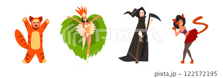 People Characters Wearing Carnival or Masquerade Costumes Vector Illustration Set