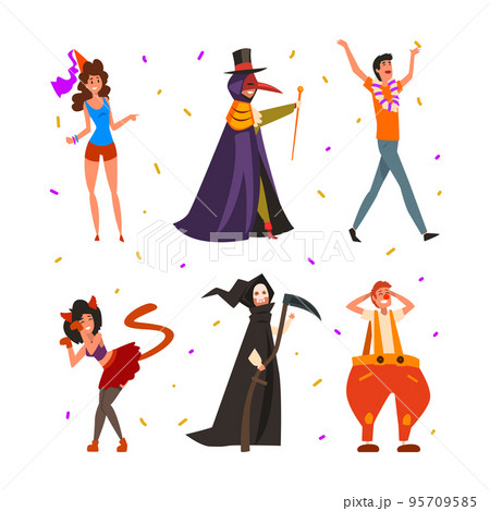 People Character Wear Masquerade Costume and Dress Vector Set