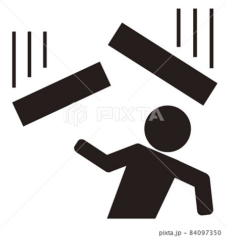 落下注意のアイコン。落下物が落ちてくるイラスト。安全第一イメージ。